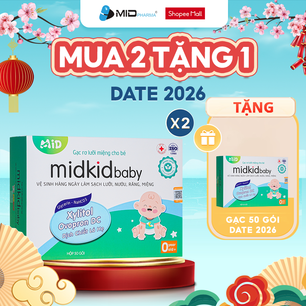 Gạc rơ lưỡi MidkidBaby hộp 50 gói ướt cho bé sơ sinh giúp làm sạch răng nướu lưỡi, tiêu chuẩn ISO 5* - Date 2026