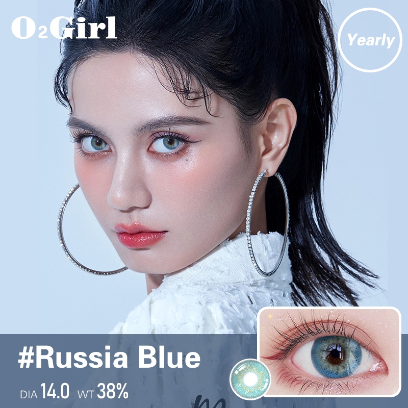 kính áp tròng O2Girl contact lenses 2 mảnh cosplay làm đẹp học sinh màu nâu xám xanh đen tự nhiên nam và nữ 14.0-14.5mm đường kính ống kính áp tròng hoạt hình học sinh