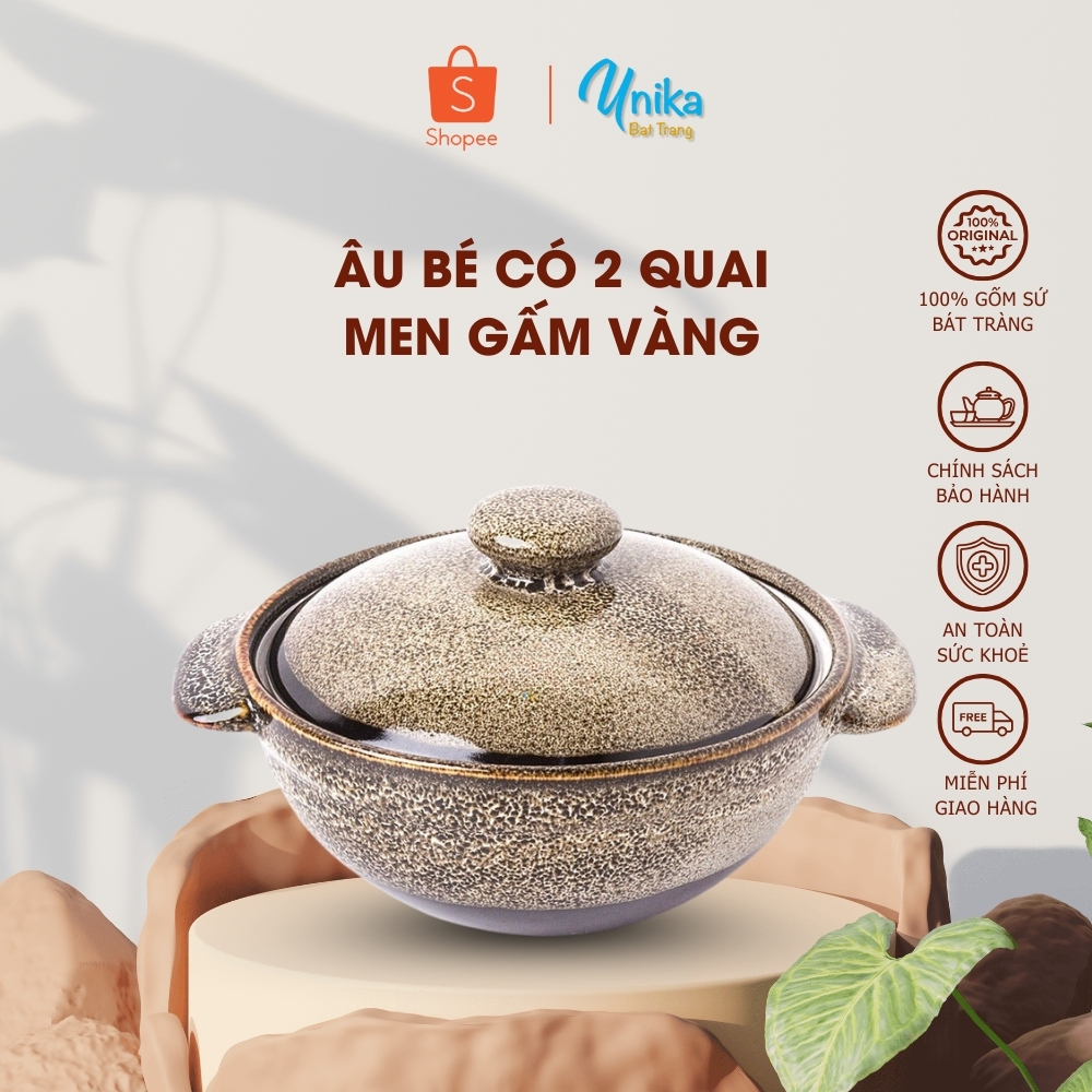 Âu Bé Có 2 Quai Men gấm vàng - Âu Cơm D13x9cm- Gốm Sứ Cao Cấp Bát Tràng