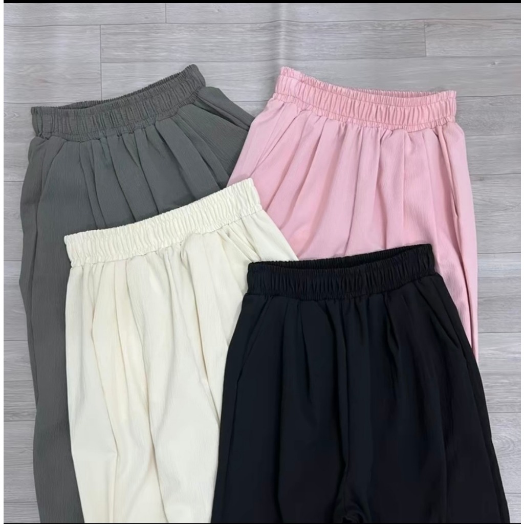[Combo 2 quần] Quần Ống Rộng Chất Đũi Cạp Chun Lưng Cao dài 100-104cm phong cách nhật bản Lên Dáng Siêu Xinh