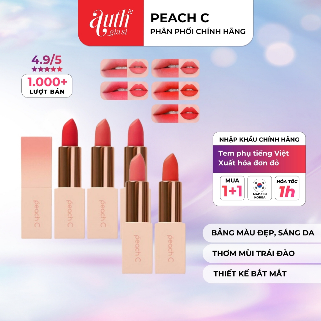 🔥[CHÍNH HÃNG] Son thỏi Hàn Quốc PEACH C Easy Matte siêu mịn căng mọng lên màu chuẩn ( Sale Date )