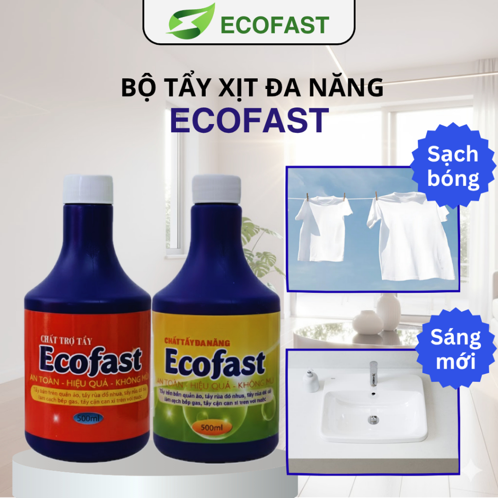 Bộ Tẩy Xịt Đa Năng Ecofast 1000ml – Tẩy Bẩn Đồ Vải, Dầu Mỡ Nhà Bếp, Cặn Canxi, Mốc Hiệu Quả