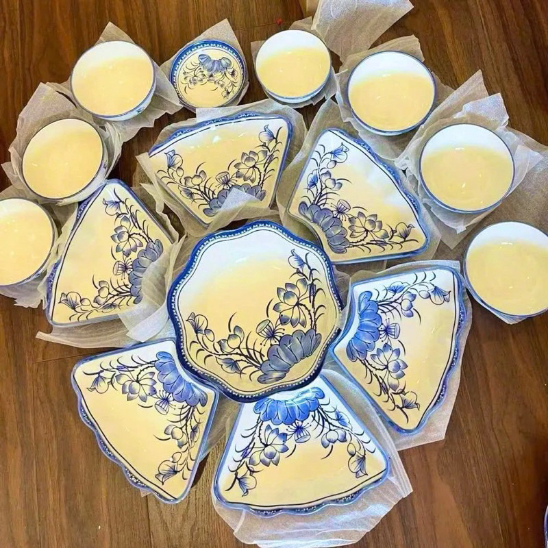 [Bát Tràng siêu rẻ ]7 món Sen +khay . Bộ bát đĩa hoa mặt trời sứ món sen mới cao cấp bát tràng chuẩn đẹp như hình 48cm