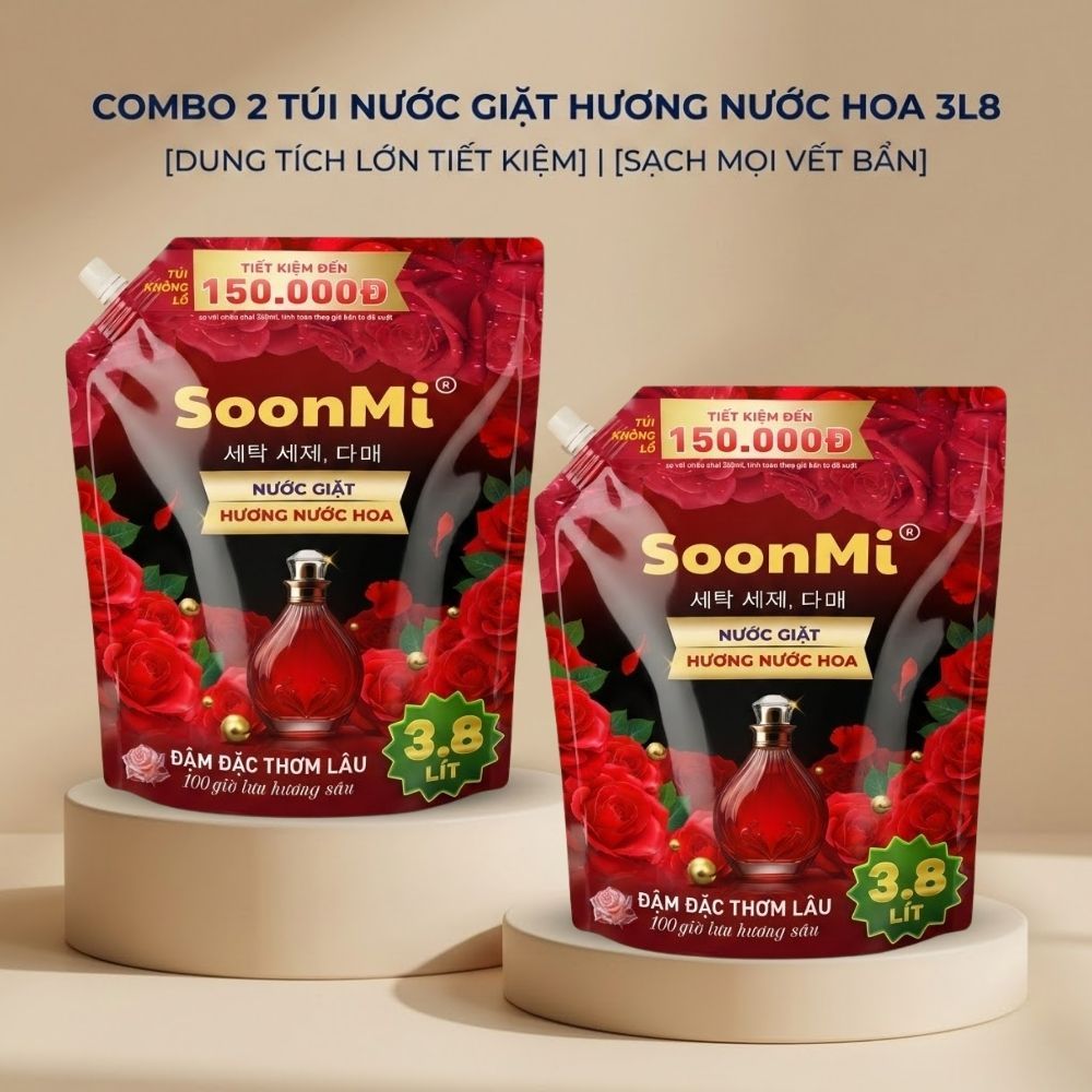 [MUA 1 TẶNG 1] Túi 3.8L Nước Giặt SoonMi Hương Nước Hoa Hồng Đậm Đặc Lưu Hương Nước Giặt Làm Sạch 4kg + 4kg