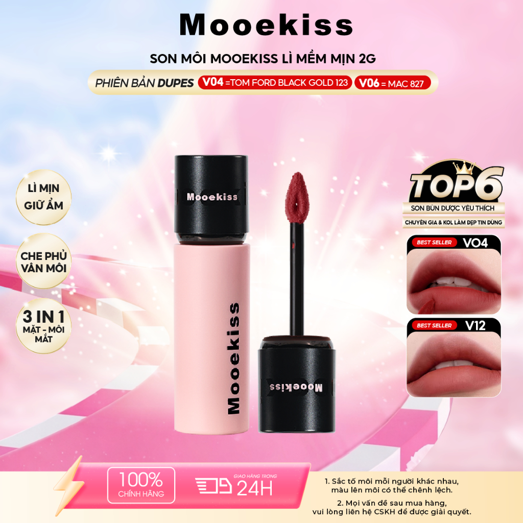 Mooekiss Matte Lip Gloss: Son bóng có kết cấu mềm mại, mượt mà, bền lâu và nhẹ 2g