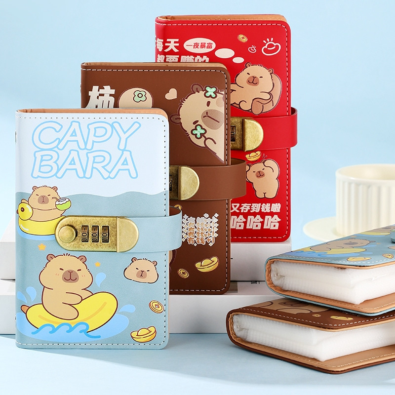 Sổ Tiết Kiệm Đựng Tiền Capybara Bìa Da PU Cao Cấp – Sổ Quản Lý Chi Tiêu 100 Trang Khóa Mật Mã Cute