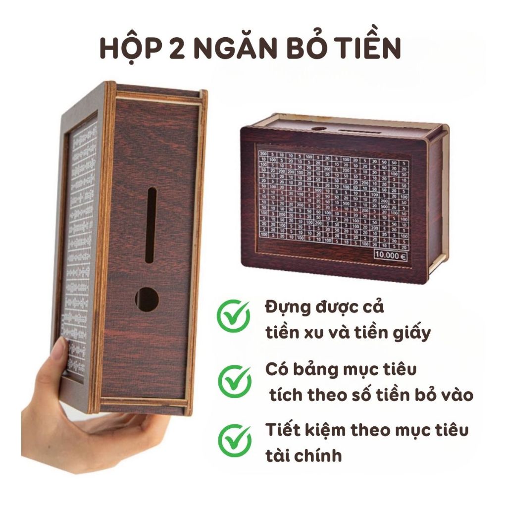 Hộp đựng tiền tiết kiệm bằng gỗ thử thách tiết kiệm 100 ngày giúp lên kế hoạch thông minh WANHY