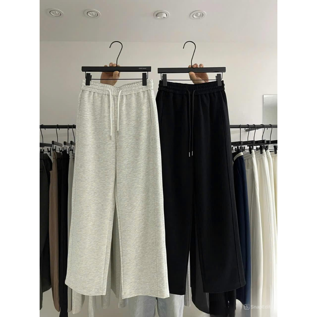 Quần Nỉ Ống Rộng 2 Sọc Gân vải nỉ dày dặn mềm mịn co dãn form suông rộng basic màu đen xám nam nữ dễ mặc dễ phối đồ