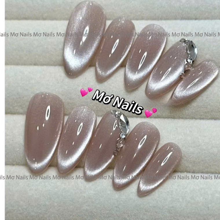 (Tặng hộp, keo MxBon) Nail Box thiết kế 10 mắt mèo kim cương fench đầu móng hồng nâu nude M113