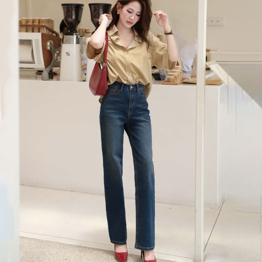 Quần jean nữ GILLEE ống đứng lưng cao tôn dáng chất liệu vải cao cấp co giãn tốt FQJ047