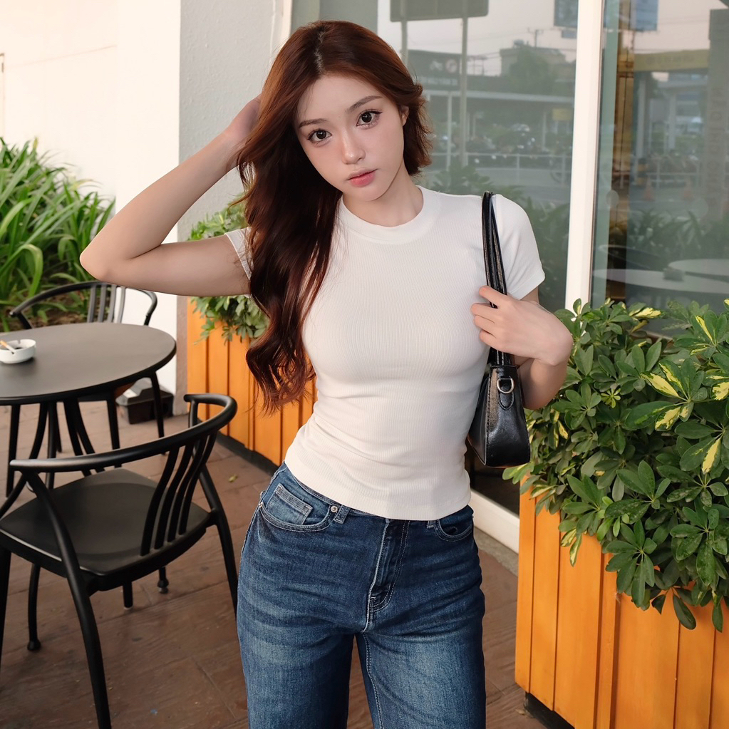 ERA TOP - Áo thun gân đũa cổ tròn tay ngắn form basic thun gân mềm