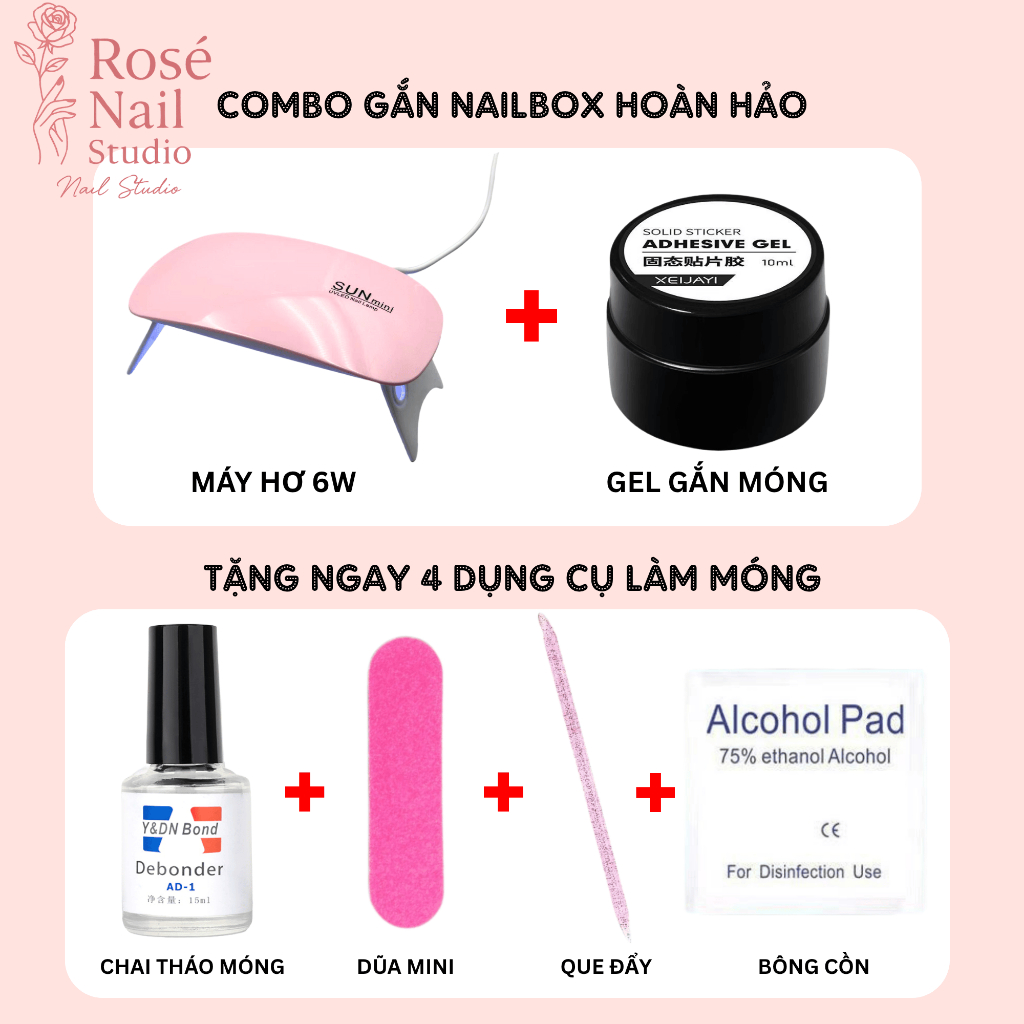 Combo Máy Hơ Gel + Gel Gắn Nail + Tặng 4 Dụng Cụ Làm Móng | Gắn Nail Box Tại Nhà | Rosé Nail Studio