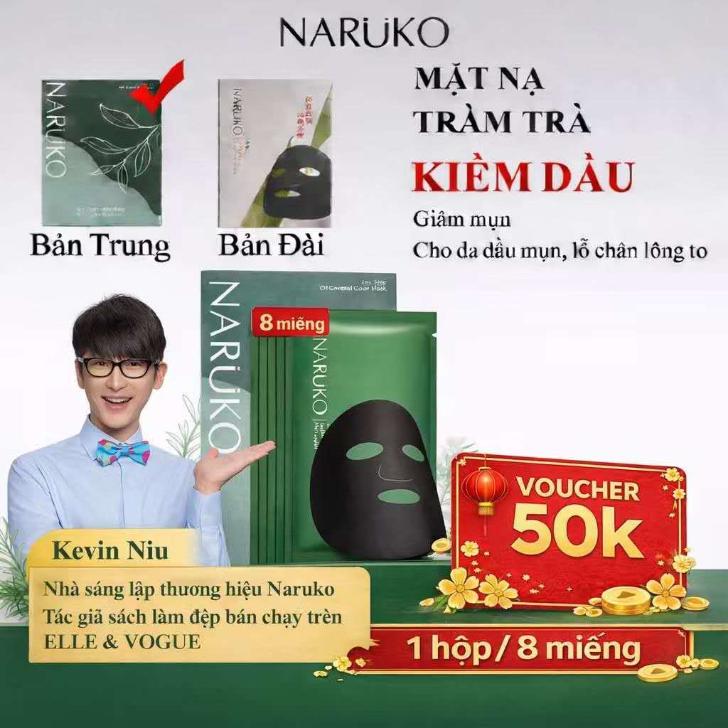 COD Hộp 8 miếng Mặt nạ Tràm Trà Naruko kiểm soát dầu và mụn Tea Tree 26g/miếng bản Trung