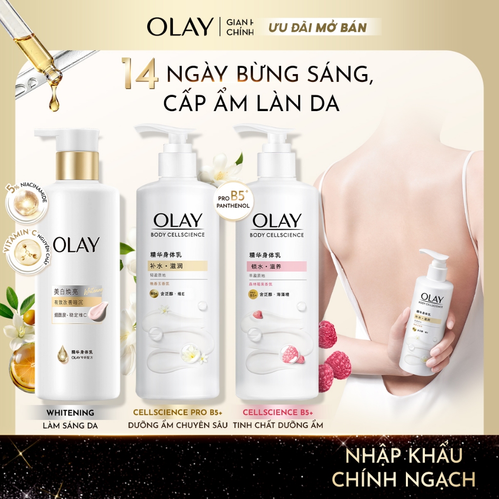 [MỚI] Sữa Dưỡng Thể OLAY Hương Nước Hoa Dưỡng Ẩm Chuyên Sâu Với Vitamin Pro B5+/Sáng Da Với 5% Niacinamde & Vitamin C
