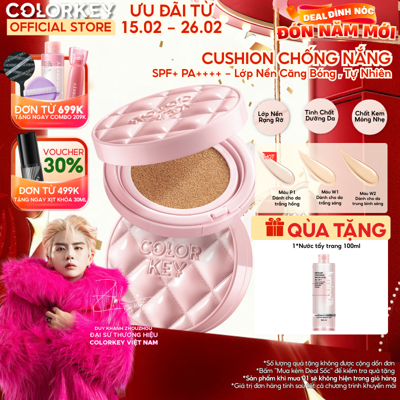 Cushion Chống Nắng SPF 50+ PA++++ COLORKEY Kẻ Ô Hồng, Mỏng Nhẹ Giữ Lớp Make-Up Lâu Trôi 11g
