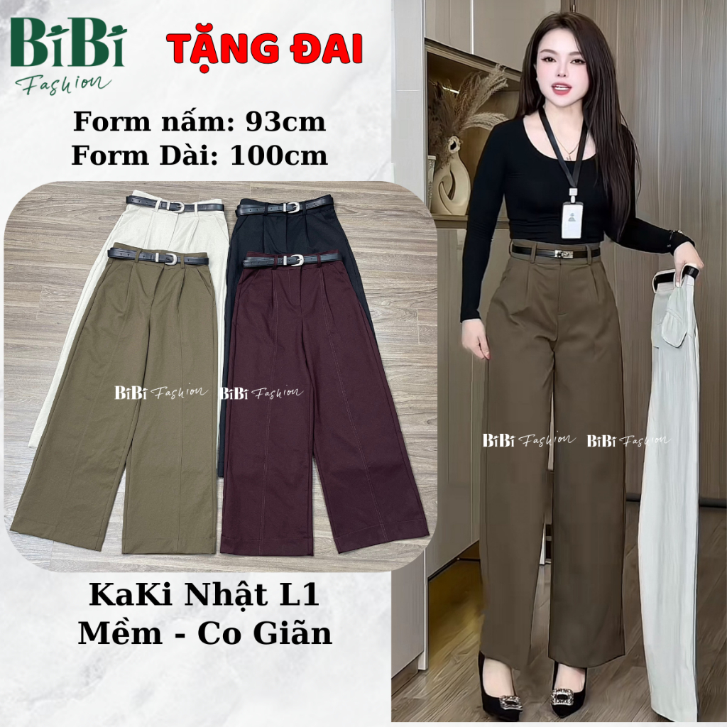 (Kaki Nhật L1) Quần Xuông Ống Rộng Cạp Cao Nữ Dáng Nấm 93cm Tôn Dáng Đẹp Xinh Bigsize Mềm Co Giãn