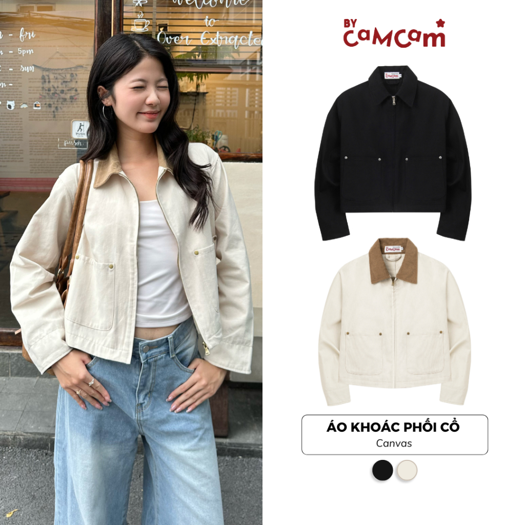 Áo Khoác Canvas Dáng Ngắn 𝑩𝒚𝒄𝒂𝒎𝒄𝒂𝒎 Áo Khoác Phối Cổ Nhung Tăm Basic Unisex Nam Nữ AKHD314