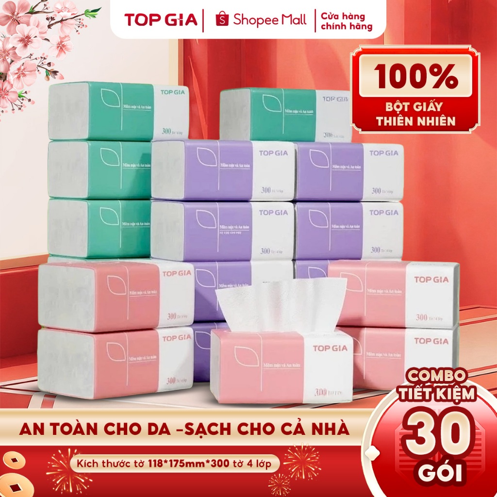 Giấy ăn rút Top Gia cao cấp giấy rút thùng 30 gói/16 gói/46 gói/20 gói 4 lớp mix 3 màu cực xinh